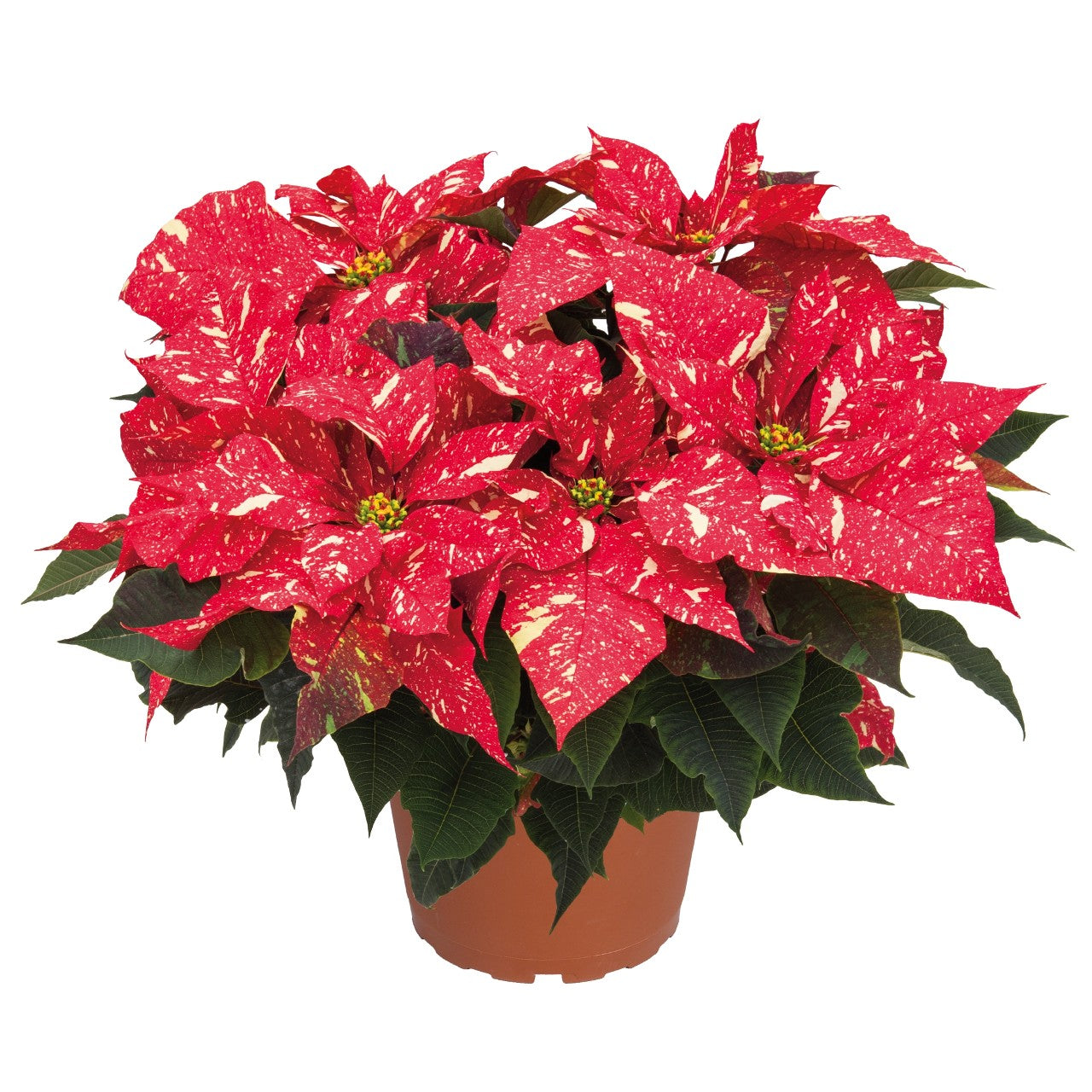 Oversized red bracts speckled with white for a sparkling holiday effect.