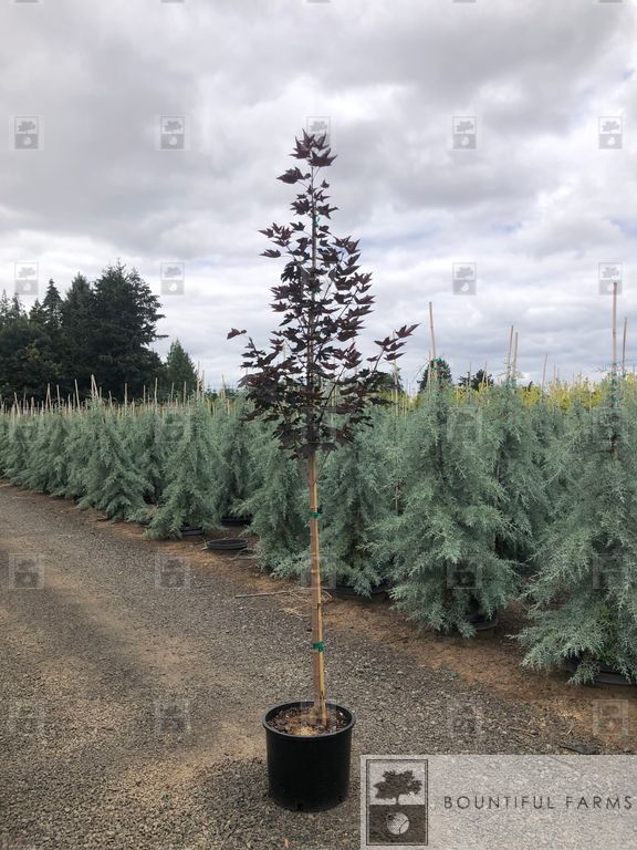 The Crimson Sunset® Maple is a highly sought-after ornamental tree known for its rich purple foliage and dependable performance in heat. Unlike many purple-leaf maples, this cultivar maintains its deep, vibrant color throughout the growing season—resisting bronzing and fading even in intense summer conditions. Its upright, oval form and medium size make it an excellent choice for residential yards, streetscapes, and landscape accents where bold color is desired without excessive size.