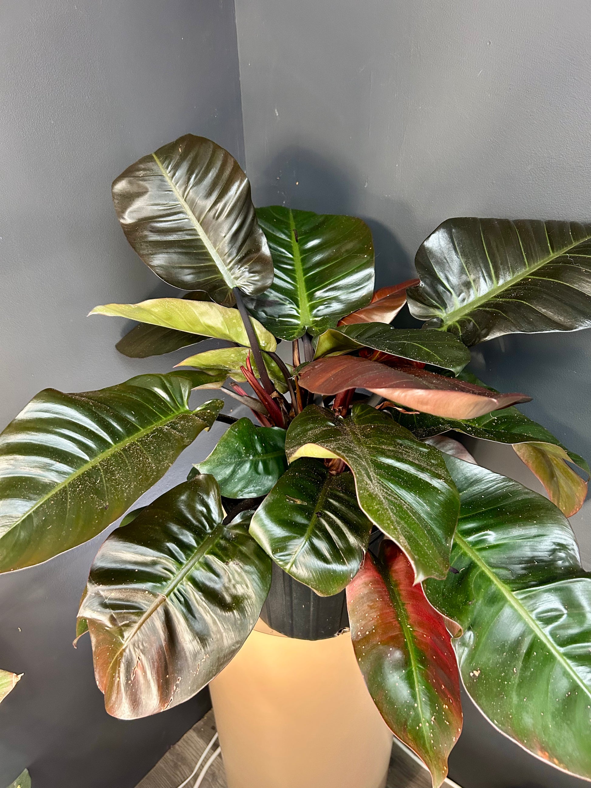 The Philodendron Black Cardinal is a bold, low-maintenance houseplant known for its dramatic foliage that deepens from bronze-red to a near-black sheen as it matures. With its compact, self-heading growth habit, this variety is perfect for tabletops or floor displays where its glossy, richly colored leaves can shine. It thrives in moderate to bright, indirect light and adds a sophisticated, tropical touch to any indoor space.