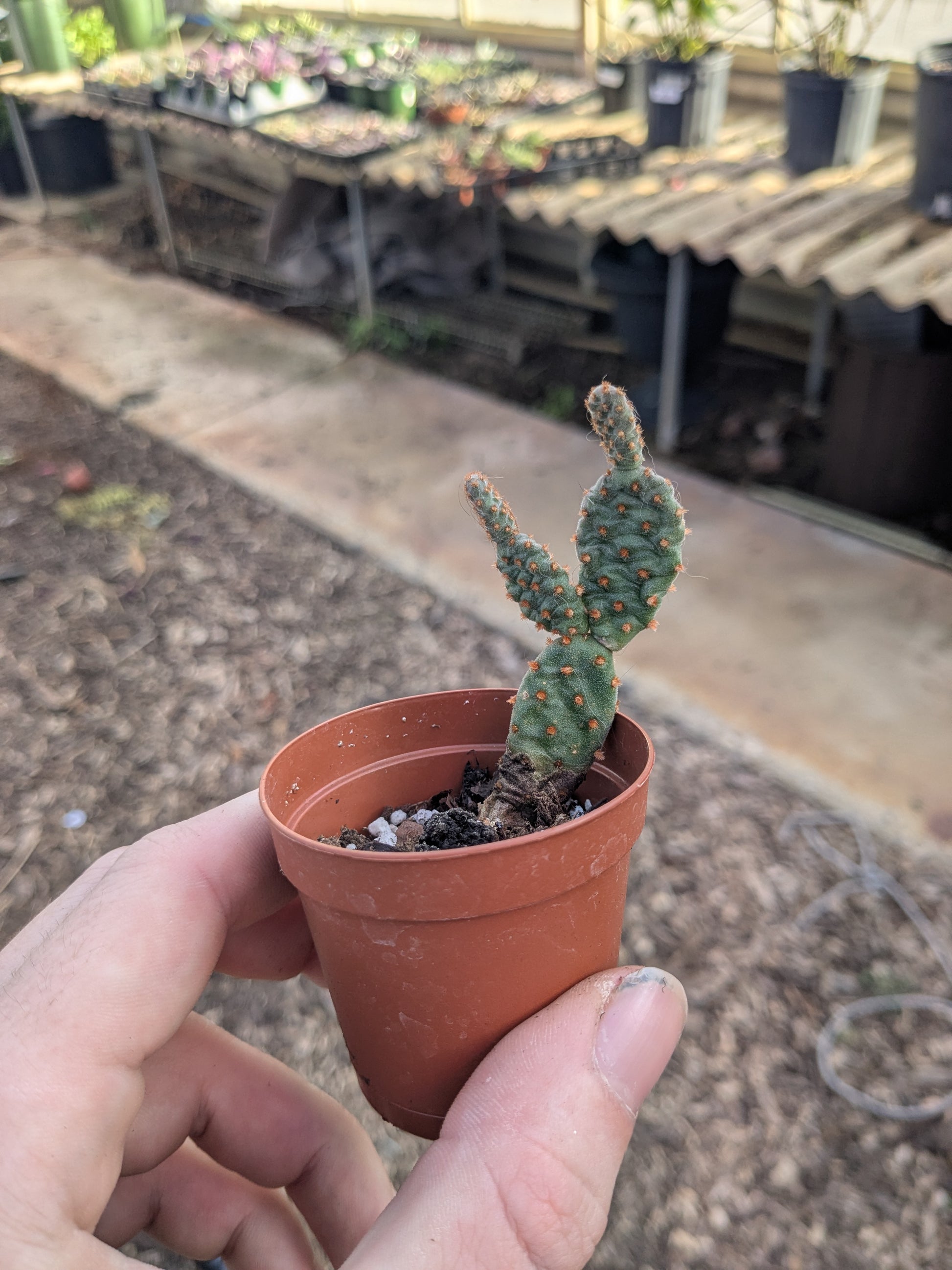 Opuntia feature flat, paddle-shaped segments that create a classic cactus silhouette in a compact size. Hardy and low maintenance, it’s an easy addition to sunny windowsills and small plant collections.